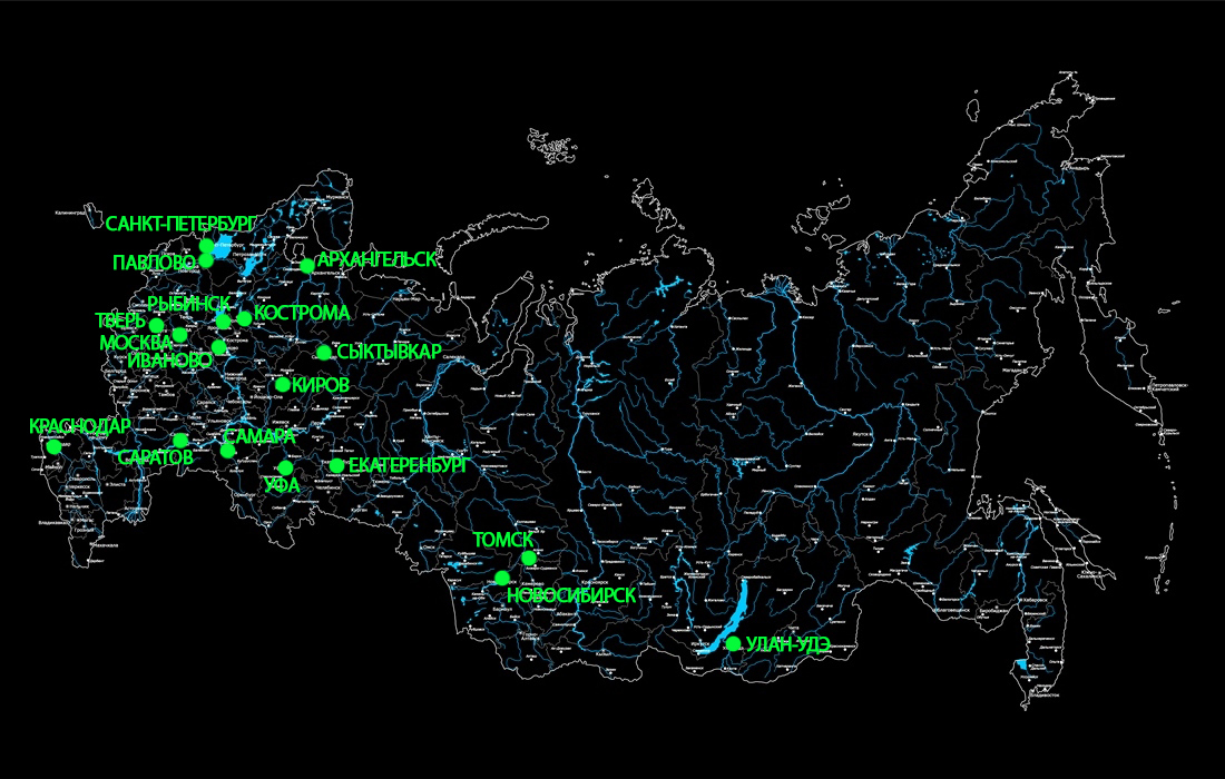 Сыктывкар, Улан-Удэ, Архангельск, Рыбинск, Томск, Краснодар (4 клиента), Кострома, Тверь, Самара, Павлово (Ленинградская обл.).